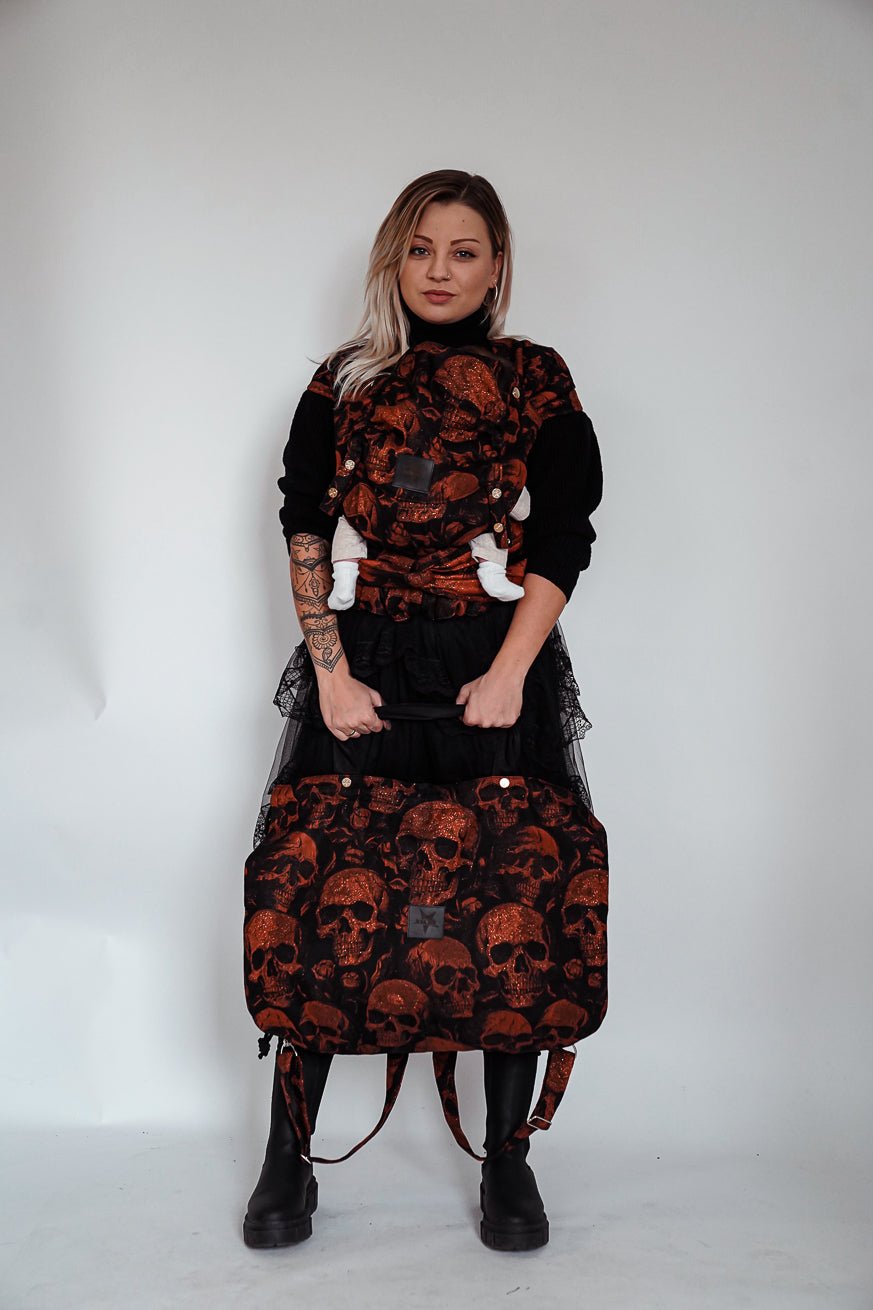 Το KOKADI Το Mommy Bag Skulls x Florian είναι κάτι πολύ περισσότερο από μια τσάντα πάνας - είναι μια έκφραση προσωπικότητας. Το βαθύ μαύρο, διάσπαρτο με αστραφτερά κρανία στο χρώμα του χαλκού, τα κάνει να φαίνονται επαναστατικά και πολυτελή ταυτόχρονα. Αυτό το σχέδιο αντιπροσωπεύει τους γονείς που δεν συμβιβάζονται όσον αφορά το στυλ, τη λειτουργία και τη στάση.