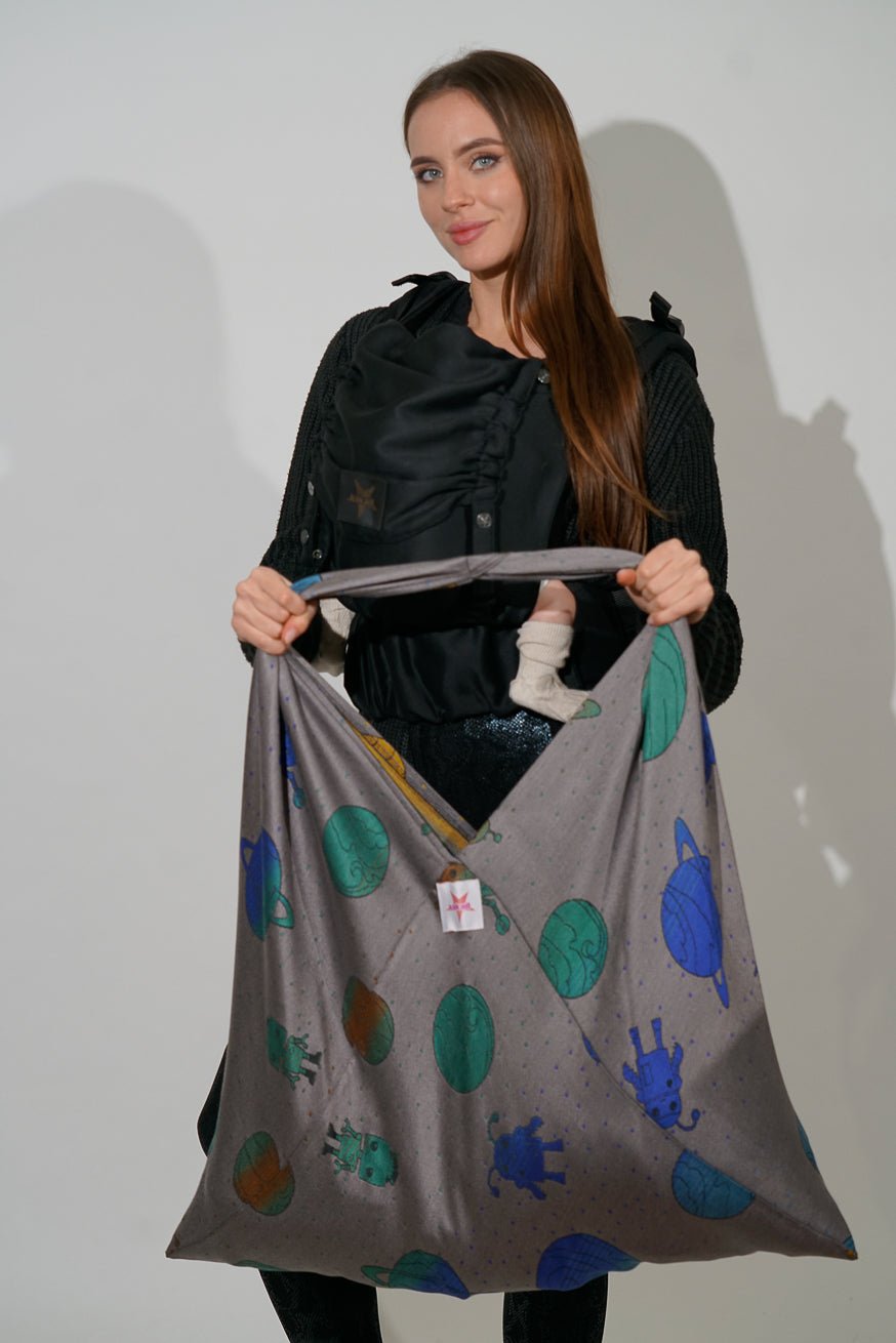 Mit dieser Edlen Trage ist man der Hingucker für alle. Auf der Kokadi Bilder sieht die Trage schon sehr schön aus . In Real hat sie mich dann komplett überzeugt . Trotzdem des glitzer Anteils ist sie kuckelweich und trägt sich sehr bequem.