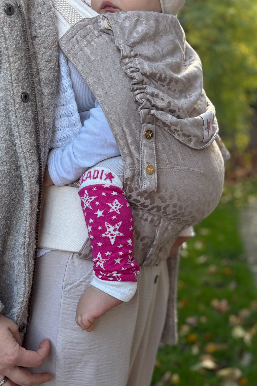 Mit dieser Edlen Trage ist man der Hingucker für alle. Auf der Kokadi Bilder sieht die Trage schon sehr schön aus . In Real hat sie mich dann komplett überzeugt . Trotzdem des glitzer Anteils ist sie kuckelweich und trägt sich sehr bequem.